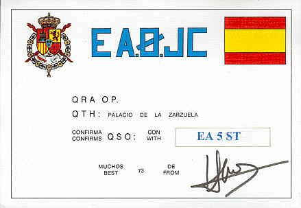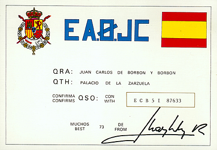 ESTAS SON LAS TARJETAS QSL QUE HASTA EL MOMENTO POSEO DE LA ESTACIÓN EA0JC, D. JUAN CARLOS I, REY DE ESPAÑA.